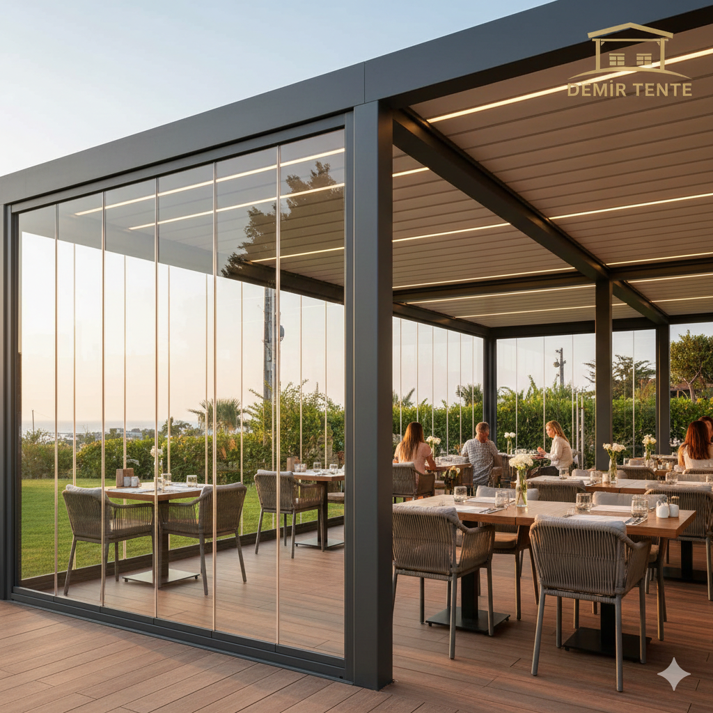 Prestijli işletmelerin dış mekanlarını Demir Tente kalitesiyle koruyoruz